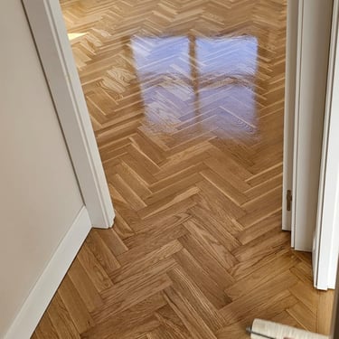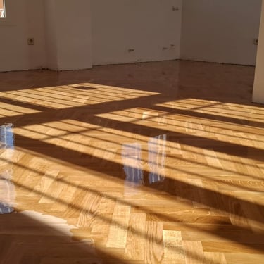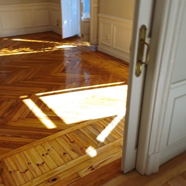 En las imágenes puedes apreciar el impecable trabajo de instalación y acabado de parquet en diseño de espiga, realizado con materiales de alta calidad y un barnizado que resalta el brillo natural de la madera. Este tipo de suelo no solo aporta un toque cómodo, sino también durabilidad y calidez a tu hogar. Nos especializamos en la instalación y renovación de parquet y tarimas flotantes, garantizando un resultado profesional que elevará la estética de cualquier ambiente.